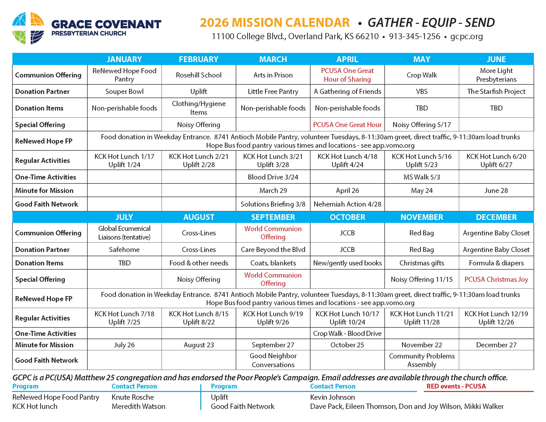 CLICK IMAGE BELOW to download a PDF file of the 2026 Mission Calendar, or link below.